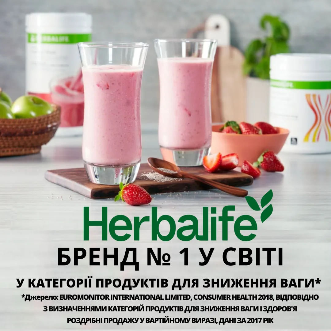 Будь-які твердження щодо контролю ваги відносяться до Програми контролю ваги Herbalife. Вона включає також збалансовану дієту, регулярні фізичні вправи, щоденне споживання необхідної кількості рідини, вживання біологічно активних добавок і достатній відпочинок. Усі результати індивідуальні та можуть відрізнятися.