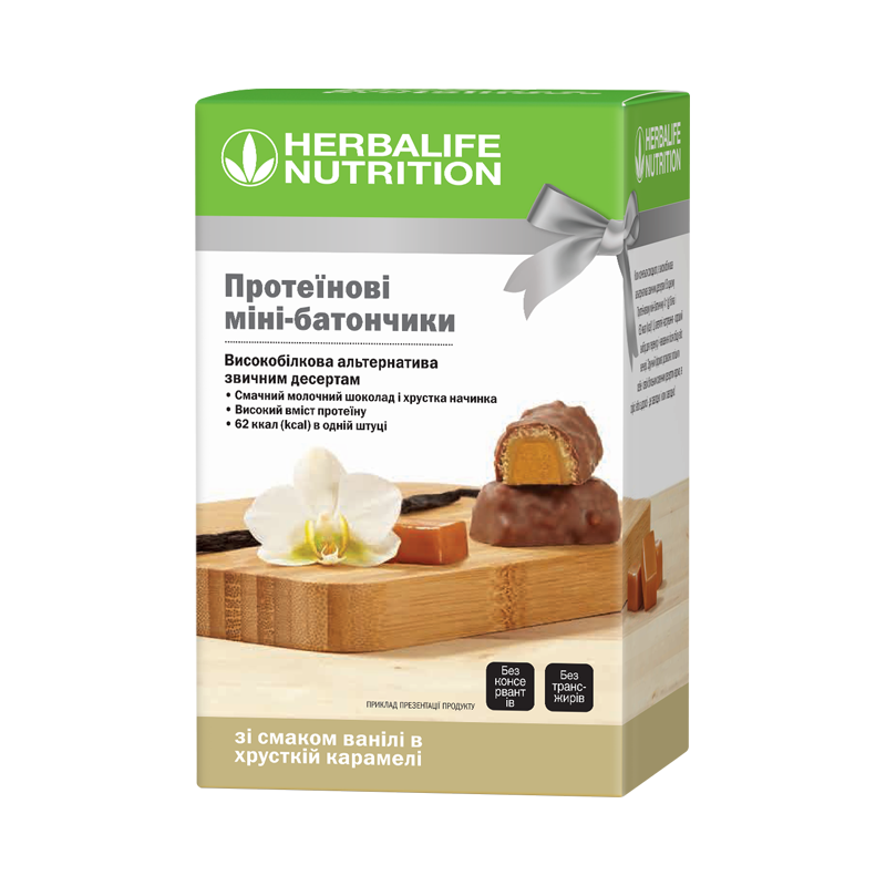 - 4 г високоякісного білка і 62 ккал на 1 міні-батончик